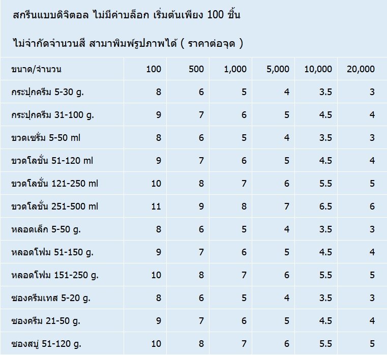 ราคาสกรีน Skincare Packaging